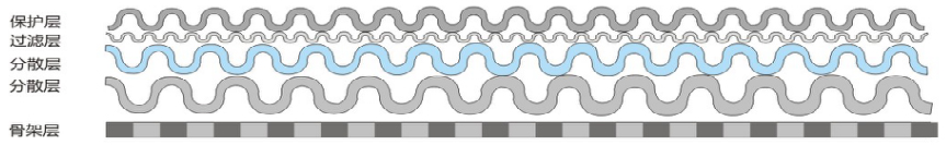 這是一種由標準材料(不銹鋼3004或316L)的沖孔板與數層方孔網(或密紋網)復合燒結為一體的新型濾材,層數與構成絲網的目數根據不同的使用條案件與用途而定。